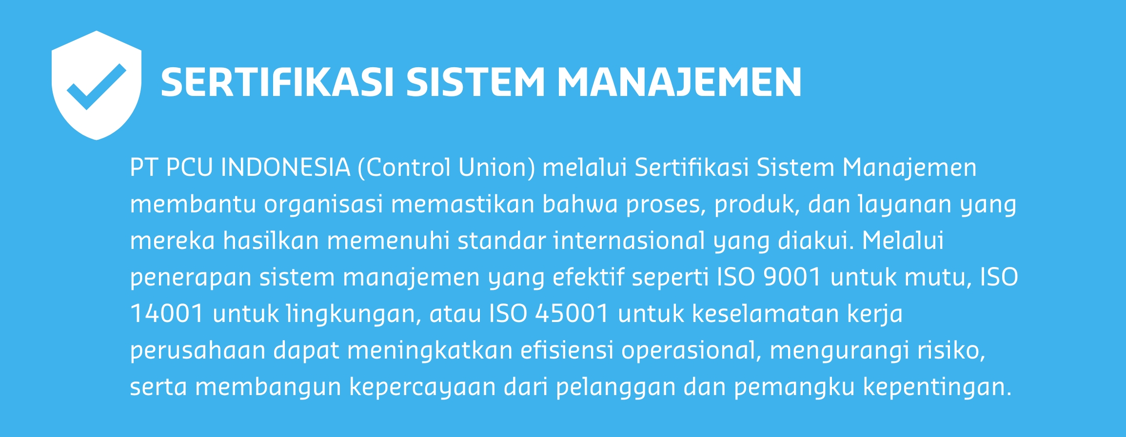 Di PT PCU INDONESIA, kami bukan sekadar penyedia sertifikasi—kami menjadi mitra Anda dalam membangun bisnis yang berorientasi masa depan dan berkelanjutan.