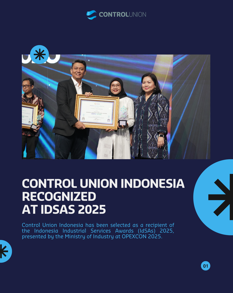 Control Union Indonesia has been selected as one of the recipients of the Indonesia Industrial Services Awards (IdSAs) 2025, presented by the Ministry of Industry at OPEXCON 2025, November 13th, Pullman Central Park Jakarta.